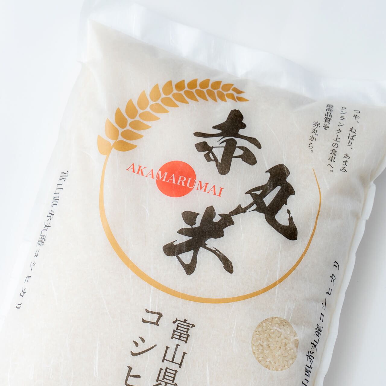 富山県の豊かな自然環境で育まれた赤丸米コシヒカリは、香り高く、ふっくらとした食感が特徴の最高級米です。